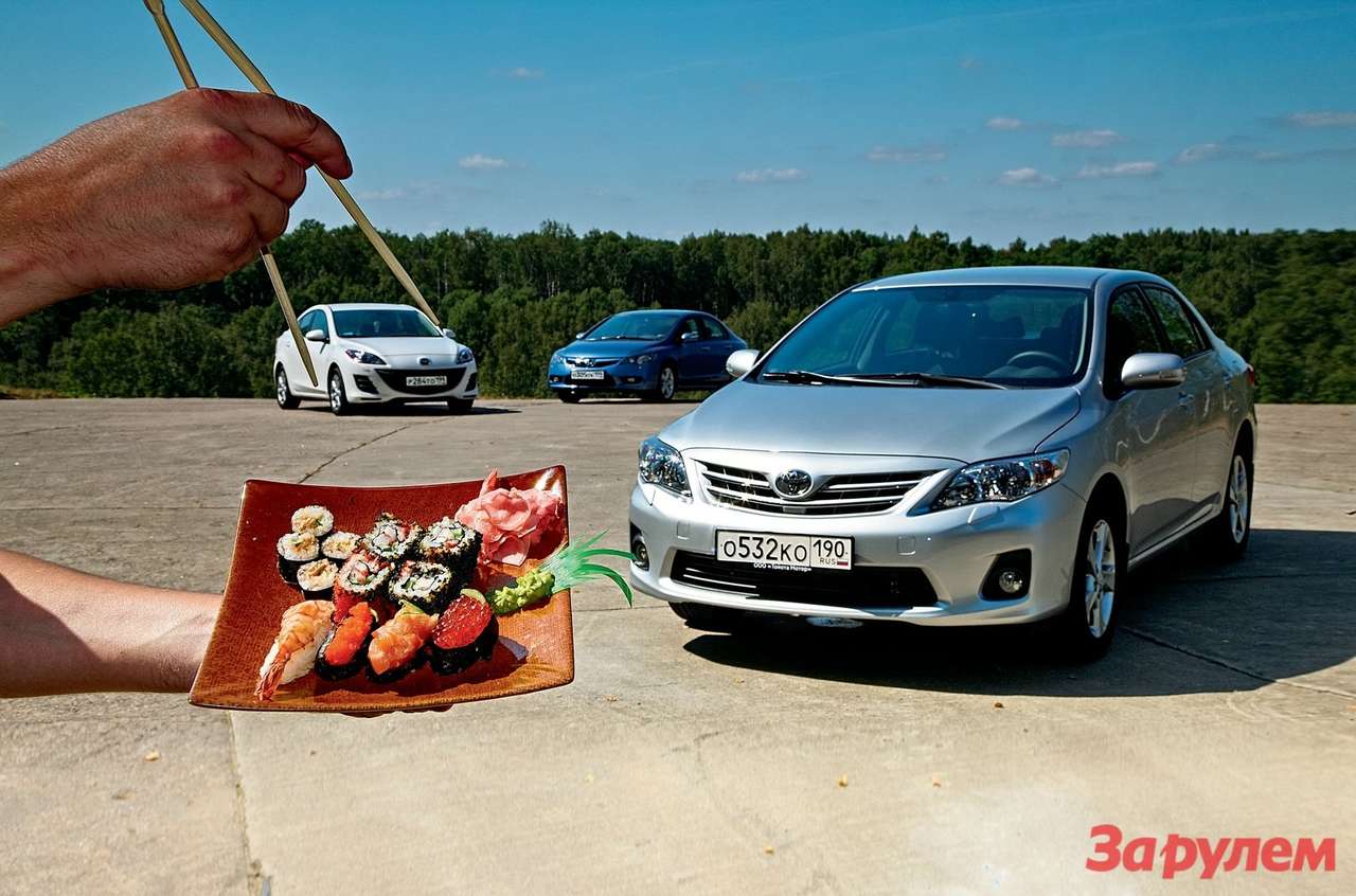 Редкий случай: в тесте сошлись не просто три прямых конкурента, а выходцы из одной страны. «Мазда-3» ох как аппетитна! Но не менее желанны модернизированная «Хонда-Сивик» и только что обновленная «Тойота-Королла».