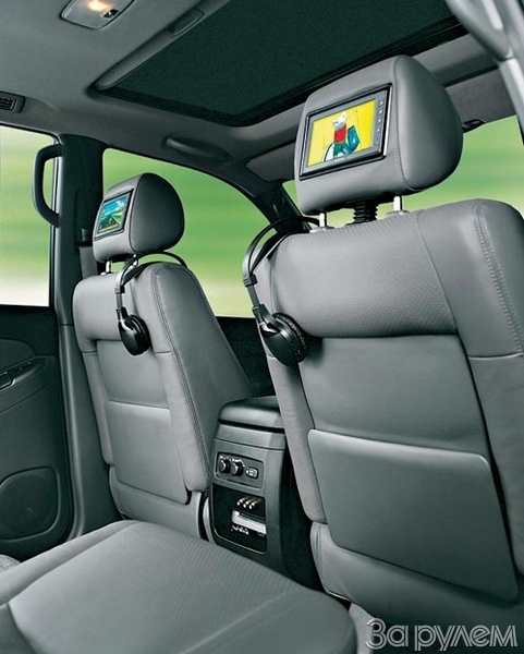 Для «Тойоты-Ленд Крузер» теперь можно заказать интегрированную DVD-систему. На заводе в подголовники передних сидений монтируют два 5,8-дюймовых монитора, DVD-плейер – в заднюю часть центрального подлокотника плюс пульт дистанционного управления. Есть и пара стереонаушников с инфракрасными портами. Динамики тут не годятся.