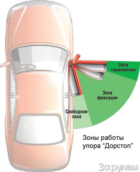 Казалось бы, конструкция двери отработана до мельчайших деталей. Ну еще чуть усовершенствовать замки да увеличить число фиксированных положений открытой двери... Именно для того, чтобы ее можно было остановить в любом месте, да к тому же не задеть, слишком сильно размахнувшись, соседнюю машину, немецкая фирма «Стабилус» разработала для БМВ... дверной упор «Дорстоп».