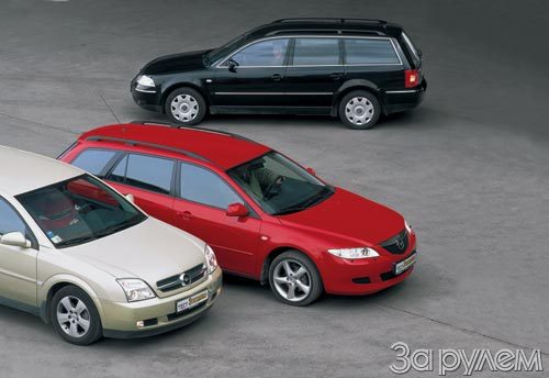 В родном отечестве спрос на подобные машины специфичен. Большинство дилеров продают универсалы исключительно на заказ – ведь основная масса клиентов предпочитает седаны и хэтчбеки. Едва удалось избежать разочарования, когда мы решили познакомиться с универсалами класса D. «Нет, не предвидится, уже продали», – отвечали в официальных представительствах и автосалонах. Дефицит только подогрел наш интерес к задуманному – в конце концов, «смельчаки» нашлись: «Опель Вектра Караван» (2,2 л, 155 л. с.), «Mazda 6 универсал» (2,2 л, 166 л. с.) и «Фольксваген Пассат Вариант» (2,3 л, 170 л. с.).