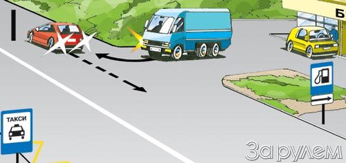 въезд на АЗС. Он: