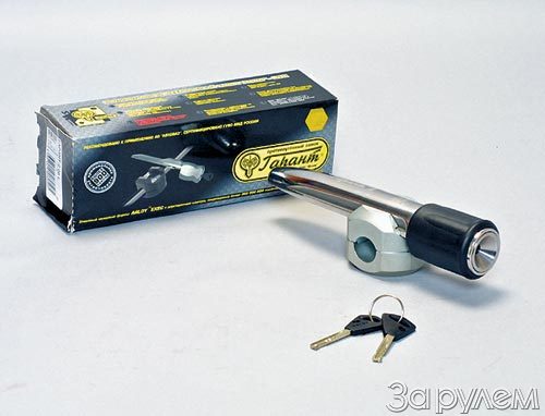 Лидер по части механических противоугонок – тольяттинская фирма «Флим» – продолжает совершенствовать свои запорные изделия. Одно из них – представленный на московском «Мотор Шоу-2004» новенький «Гарант» в исполнении «Люкс». Его замковый механизм ABLOY с двусторонним ключом имеет не только повышенную секретность, но и удобнее в применении. Пластмассовая ручка также улучшает эргономику изделия. Стопор выполнен из нержавеющей стали, прошедшей термообработку, а дополнительную защиту от высверливания обеспечивают встроенный шарик и специальная дополнительная шайба. Показанное на фото изделие предназначено для «восьмого» семейства ВАЗ – отметим, что теперь все «Гаранты» будут выпускать в двух вариантах – люксовом и базовом.
