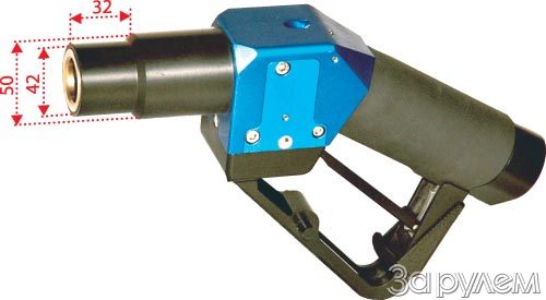 Внешне устройство мало отличается от привычного бензинового пистолета. Оно позволяет одной рукой совершенно безопасно заправлять машину горючим газом, хранимым под давлением до 350 атм. (Этого в перспективе потребуют водородомобили.) Достаточно открыть лючок заправочного штуцера, надеть на него пистолет и нажать рычаг, который сам зафиксируется защелкой.
