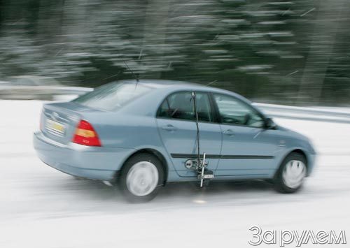 На лед и снег динамометрической дороги приглашается редакционная «Тойота Королла»! О требованиях к испытателю мы уже рассказывали (ЗР, 2004, № 10). Например, в пяти заездах на сухой дороге разброс показателей должен быть не более 5%. На неоднородном снегу и льду добиться этого довольно сложно даже профессионалу.