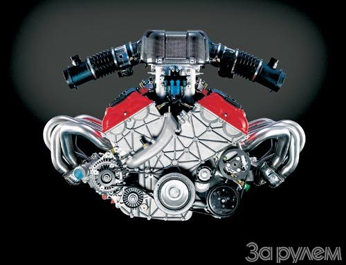 Правда, полностью заимствованным агрегат назвать нельзя. Перед разработчиками стояла задача поднять мощность. Конфигурацию и объем двигателя сохранили, а чтобы получить желаемые показатели, установили два турбонагнетателя и радиаторы для охлаждения воздуха, загоняемого в цилиндры. Степень сжатия снизили, установив поршни, специально разработанные для этой модели. Кроме того, изменили впускные и выпускные трубопроводы, чтобы полностью реализовать возможности модернизированного агрегата и наделить его подобающим голосом.