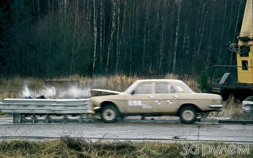 По инициативе московской корпорации «Строй Инвест Проект М» в ноябре 2004 года на Дмитровском автополигоне (НИЦИАМТ) были проведены контрольно-демонстрационные испытания дорожного демпфера, изготовленного в США. Начиненный измерительной аппаратурой GAZ 24-10 общей массой около 1300 кг на скорости 76,1 км/ч врезался в препятствие. Даже беглый осмотр после удара убедил в эффективности устройства. Повреждения передней части оказались гораздо менее серьезными, чем при наезде на неподвижное препятствие. Впечатления осмотра подтвердили результаты замеров. Перегрузки внутри автомобиля не превысили 15 g, тогда как при фронтальном ударе в бетонный куб допустимый порог определен в 80 g! Изготовители утверждают: устройство способно безопасно принять удар объекта массой до 2200 кг, движущегося со скоростью около 110 км/ч.