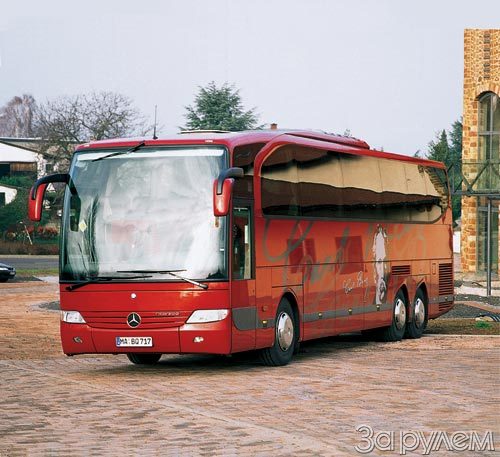 Первый «Травего», сменивший модель О404, появился в гамме «Мерседес-Бенца» в 1999 году: двухосный двенадцатиметровый автобус, в зависимости от исполнения, вмещает от 44 до 51 пассажира и обладает неплохой маневренностью. Однако в дальних поездках вес багажа подчас приходится ограничивать – в Германии полная масса двухосных моделей не должна превышать 18 тонн. Позже появилась трехосная модификация «Травего L» длиной 13,85 м и вместимостью 52 или 57 человек – лимит массы для нее составляет 24 тонны, а ограниченная маневренность (радиус разворота 11,7 м) не столь важна на междугородных маршрутах.