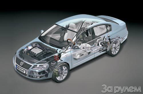 «Пассат» крепчает: жесткость кузова на кручение по сравнению с пятым поколением увеличена на 57%. Около 80% использованных сталей – облегченные высокопрочные. Еще 15% – закаленные, которые составляют основу силовой «клетки» вокруг экипажа. Масса кузова не увеличилась ни на грамм, при том что машина стала больше в длину на 62 мм, в ширину на 74 мм, в высоту на 10 мм.