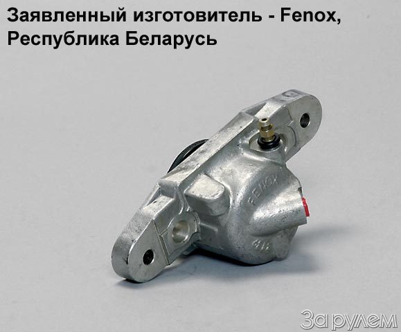 В крупных московских магазинах автозапчастей были приобретены по две детали четырех производителей: Fenox, ВАЗ и две безымянные – все наиболее ходовые. Безымянные цилиндры несколько отличались друг от друга, но эксперты опознали их общую родину – город Тольятти. Поэтому будем называть их «Тольятти-1» и «Тольятти-2». Вазовские цилиндры пришлось закупать вместе с суппортом, а затем отделять друг от друга – отдельно они не продаются. Зато с «Феноксом» – никаких проблем.