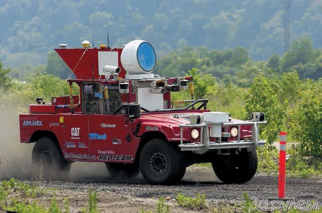 Сам же робот вряд ли ошибется: его «мозги» отныне состоят из семи компьютеров «Интел Пентиум М» и 64-битного процессора «Итаниум-2». А уж видит он получше любого водителя: радар, работающий на частоте 77 ГГц, различает металлические и неметаллические предметы в самом густом тумане, ему помогают семь лазерных «глаз», буквально ощупывающих дорогу. Не забыта и навигационная система GPS, точность которой довели до нескольких сантиметров.