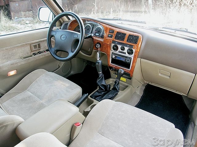 Пикап – работяга, и щеголять дизайнерскими изысками ему некогда. Экстерьер и интерьер выглядят более или менее пристойно: перед нами не ископаемое, а недавнее прошлое. В конструкции использованы проверенные десятилетиями решения. Рама, передняя независимая подвеска с торсионами, задний мост на рессорах, постоянный привод задних колес и жестко подключаемый через раздаточную коробку с понижающим рядом передок. Однако веяния последних лет сыграли свою роль. В частности, рулевое управление, в отличие от большинства внедорожных пикапов, реечное – более точное, нежели червячный механизм.