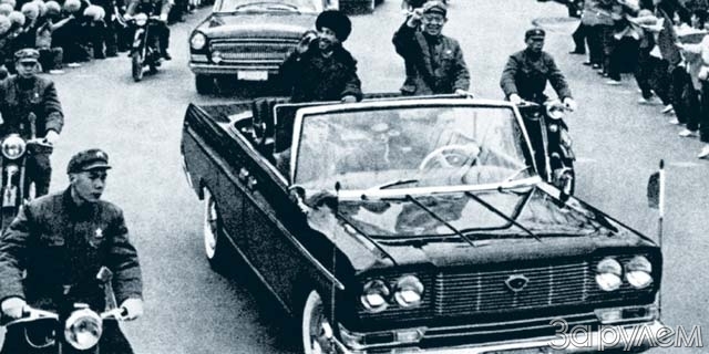 [/caption]В конце 1950-х родился самый известный китайский автомобиль – «Хунцы» («Красное знамя»). Говорили, что огромный, длиной 5730 мм, лимузин построили по личному указанию Мао Цзэдуна. Вполне возможно: руководителю будущей сверхдержавы негоже ездить на импортных лимузинах. Внешне «Хунцы» напоминал и «Чайку» ГАЗ-13, и ЗИЛ-111, и немного «Волгу» ГАЗ-21, а в совокупности «американцев», которые вдохновляли также советских стилистов. Двигатель V8 рабочим объемом 5,65 л, оснащенный двухкамерным карбюратором, развивал около 200 л.с. (указывали мощность по стандарту SAE: 210–220 л.с.). Коробка передач на «Хунцы», как и подобало представительскому автомобилю, была автоматическая.