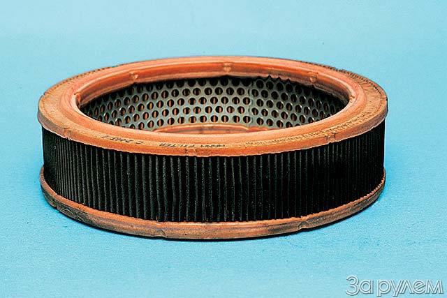 Итак, как сказано в задаче, на машине «бубнила» выпускная система. Это почти для всех стало и отправным моментом в предлагаемых вариантах решения. Как правило, у такого хозяина мотор не первой свежести. А дело, как вы помните, было зимой, и водитель, скорее всего, переключил питание карбюратора на теплый воздух. Его жестяной заборник закреплен на выпускном коллекторе. Если сюда подсасываются отработавшие газы, содержащие пары масла, то они попадут снаружи на воздухофильтр и гармошка примет такой вид, как на нашем фото.