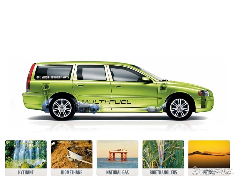 Впрочем, на инновационной выставке Bibendum Challenge компания «Вольво» уже показала автомобиль, который сможет при необходимости обойтись и без нефти, и без газа. Называется новинка «Вольво Мультифьюэл», а топливом ей служит… Загибайте пальцы: бензин – раз, метан – два, биоэтанол – три, биометан – четыре, гитан – пять! Не все эти слова на слуху, поэтому необходимы пояснения. Биоэтанол – это просто спирт, который перегнали из пшеницы, древесины и тому подобного растительного сырья. Биометан – газ, полученный при брожении, извините, органических отходов, в том числе навоза. Наконец, гитан – смесь водорода (10%) и метана (Hydrogen+Methan), которая показала себя наиболее эффективно сгорающим топливом.