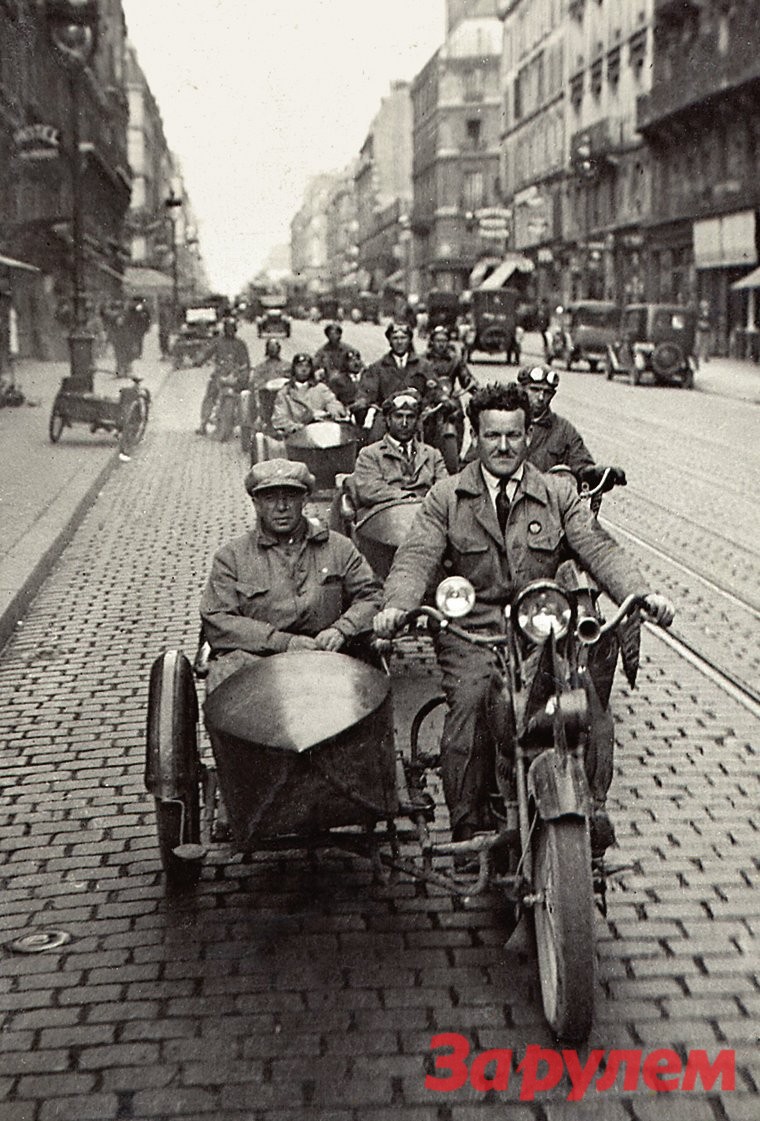 НА ПАРИЖ. Мотопробег Москва–Париж– Москва состоялся в августе-октябре 1927 года, в числе его участников тот же Чигорин, а всего их было 12. По отчету представителя ВОКС (Всесоюзное общество культурных связей с заграницей) доктора Л.Б. Нимена можно представить, какими глазами участники увидели Европу конца 20-х.