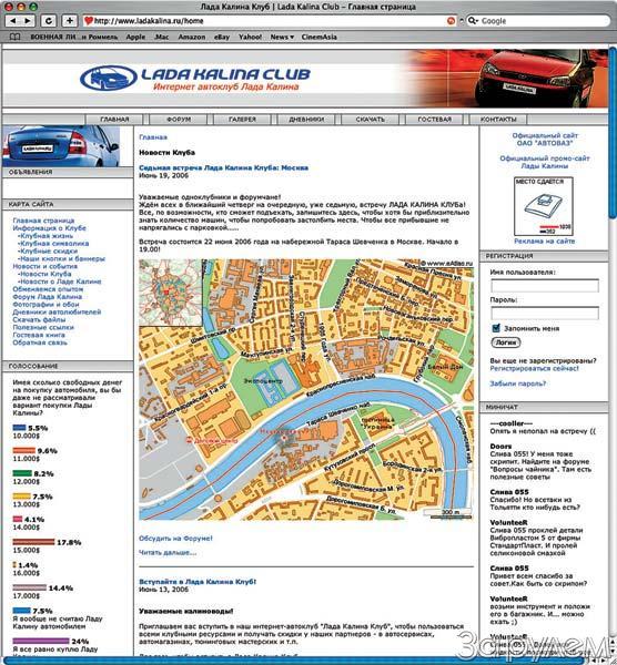Вот именно тот случай, когда от одного печатного знака смысл меняется радикально. Стоит лишь потерять дефис, как вместо чопорного официального сайта (www.lada-kalina.ru) попадаешь в клуб фанатов новейшей вазовской модели. В отличие от сухого официоза, жизнь здесь бьет ключом. Люди охотно делятся опытом, встречаются и общаются не только виртуально, но и вживую. Особо жаркие дебаты разгораются вокруг тем «брать или не брать» и в разделе «Тесты». Остается лишь порадоваться за тех, кто искренне доволен покупкой «Калины». Ведь по большому счету на форуме главное – не объективная оценка машины, а то, насколько она нравится хозяину.