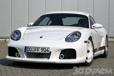 Если Porsche 911 после посещения тюнеров может развивать свыше 600 сил, то Cayman S такой мощностью похвастаться не может: все-таки это небольшое купе – не столь серьезный суперкар, как 911. Разумеется, добавленных сил вполне хватало, чтобы «крокодил» начал показывать зубы более быстроходным и крупным спорткарам, но Cayman CR42 от фирмы 9ff превзошел все ожидания. Тюнеры не стали оснащать двигатель турбинами, а увеличили рабочий объем до солидных 4,1 литра. Это дало 420 сил, крутящий момент 435 Н.м. Динамика автомобиля на уровне более «взрослых» спорткаров. До 100 км/ч Cayman CR42 доезжает за 4,1 секунды и еще примерно через 10 секунд преодолевает отметку в 200 км/ч. Cayman получил обвес и колесные диски своеобразного дизайна. Нельзя сказать, что автомобиль представляет собой образец элегантности, однако цельный и оригинальный облик, несомненно, приобрел.