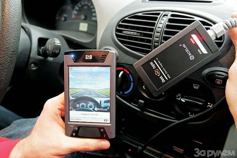 Владелец такого компьютера может продиагностировать автомобиль благодаря новой разработке ростовской фирмы АСЕ. Опираясь на богатый опыт создания профессиональных диагностических программ для персональных компьютеров, специалисты АСЕ выпустили облегченную версию для наладонного компьютера с говорящим названием CHECK ENGINE. Программу следует почерпнуть («скачать») с сайта производителя, а для диалога с электронным блоком управления двигателем нужно лишь подключить к диагностическому разъему адаптер (фото 1) производства АСЕ. (Пока цена комплекта около 3 тыс. руб., но в дальнейшем наверняка снизится.) К «наладоннику» предъявляется одно важное требование – возможность беспроводной связи Blue-tooth.