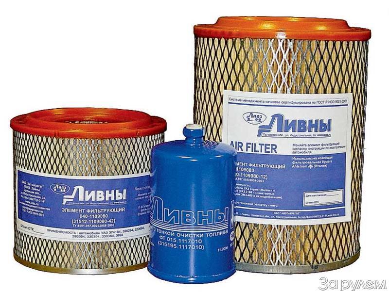 «Ливны ФТ 015-1117040» – фильтр очистки топлива. Корпус фильтра оцинкован и окрашен порошковой эмалью, стойкой к воздействию агрессивной среды. Применена бумага оптимальной тонкости отсева со 100-процентным отделением воды. В 2007 году на ОАО « УАЗ» будет поставляться модернизированная версия топливного фильтра с быстросъемными соединениями.
