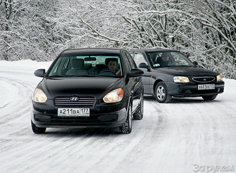 Тормоза «Верны» на зимних дорогах оценить трудно – ход педали слишком короток, усилие срабатывания ABS мало. Впрочем, теперь это считается нормальным – автоматика «отмерит и поправит». Большой ход педали «Акцента» с прогрессивным нарастанием усилия понятнее и позволяет точнее дозировать торможение, не доводя до срабатывания антиблокировочной системы.