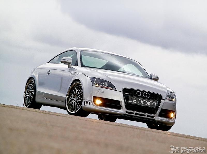 После вмешательства специалистов ателье «Джей-И Дизайн» в новый «Ауди-ТТ» его двухлитровый турбомотор выдал 244 л.с. и 355 Н.м. Этого достаточно, чтобы разогнать купе до 247 км/ч и разменять первую сотню за 6 секунд. Но в планах – снимать с более серьезного мотора V6 объемом 3,2 литра 350 л.с.! Доводке также подвергли экстерьер (передний и задний спойлеры плюс диффузор под задним бампером) и звучание выпуска, которое характерно для четырехствольного глушителя из нержавейки. Ходовую часть отличают укороченные пружины и более эффективные тормозные механизмы, которые выглядывают из-за спиц 20-дюймовых колес с покрышками 245/35R20Y.