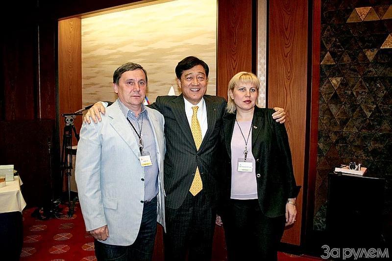 Президент «Мицубиси моторс корпорейшн» Осаму Масуко с победителями конкурса «Лучший Дилер – 2006» Светланой Виноградовой, директором ДЦ «РОЛЬФ Восток», и Игорем Лазуренко, учредителем группы компаний «Гедон».