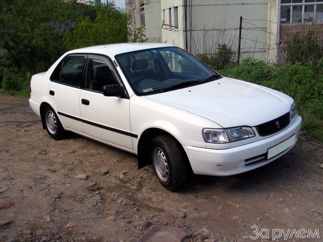 Там «Короллы» в самой простой комплектации стоили 5200-5500 у.е., «суперовые» - 6200. Хотелось сэкономить на ТО купленной машины, поэтому решил искать дальше. Поездил по объявлениям – все не то. Можно было взять универсал за 4500 с рессорной подвеской сзади, но такие были без кондиционера. Решил съездить в Уссурийск, находящийся в ста километрах от Владивостока. Там хороший рынок и цены ниже. Приехали с женой на «Короне», смотрим. Стоят штук пять «Королл» 1998 года почти в одинаковых простецких комплектациях. Это значит, что нет центрального замка, стеклоподъемники и наружные зеркала без электропривода, нет тахометра, из «музыки» обычно только приемник. Рулевая колонка не регулируется. Зато обязательно есть кондиционер, две подушки безопасности – для водителя и переднего пассажира, а также ABS. Двигатель у всех 5 A-FE, объем 1500 см3, мощность 110 л.с. Коробка – автомат. Резина бескамерная размерностью 155R13 на стальных дисках. За всех просят примерно одно – 4900 – 5000 долларов, но продавцы готовы торговаться. Выбрать из такого количества машин довольно сложно, всегда есть что-то, что отталкивает от покупки. Одна битая в корму и сделана не очень, у другой скручен пробег (на одометре что-то около 40 тысяч, а, судя по наклейке под капотом, свечи меняли последний раз при пробеге около 130 тысяч), третья вся блестит, но двигатель в окислах, стальные детали очень ржавые («топляк»?). И так далее. Одна «Королла» заинтересовала. Внешний вид хороший. Пробег 86 тысяч. Посмотрел на яме, подергал наконечники и привода, замечаний нет. Днище ровное, не битое. Заводская мастика на своих местах. Качнул передок, стойки еще ничего. Зад качать не стал, а зря! Двигатель чистенький, отмытый. Лучше бы был в пыли, тогда видно, если масло подтекает. Антифриз ярко красный, без ржавчины, масло совсем светлое, декстрон малиновый без следов гари. Салон простой. Тканевой обивки на дверях нет вообще, сиденья по бокам и сзади из кожзама, а не велюровые. Впрочем, кожзам очень качественный и приятный на ощупь. То же в полной мере относится и к пластику. Спинка заднего сиденья неразрезная, без подголовников. Двухцветное исполнение салона очень понравилось. На центральной консоли внизу довольно вместительный бокс с крышкой, ниже выдвижной сдвоенный подстаканник и пепельница. На приборной панели помимо прочих есть контрольная лампа давления в шинах. Зазоры ровные, ничего не топорщится. Об остальных особенностях комплектации уже писал. Проехались с продавцом по рынку. Он за рулем. Ничего не бренчит, не скрипит. Я поленился сесть за руль, расслабился. Опять зря. Сговорились на 4800.