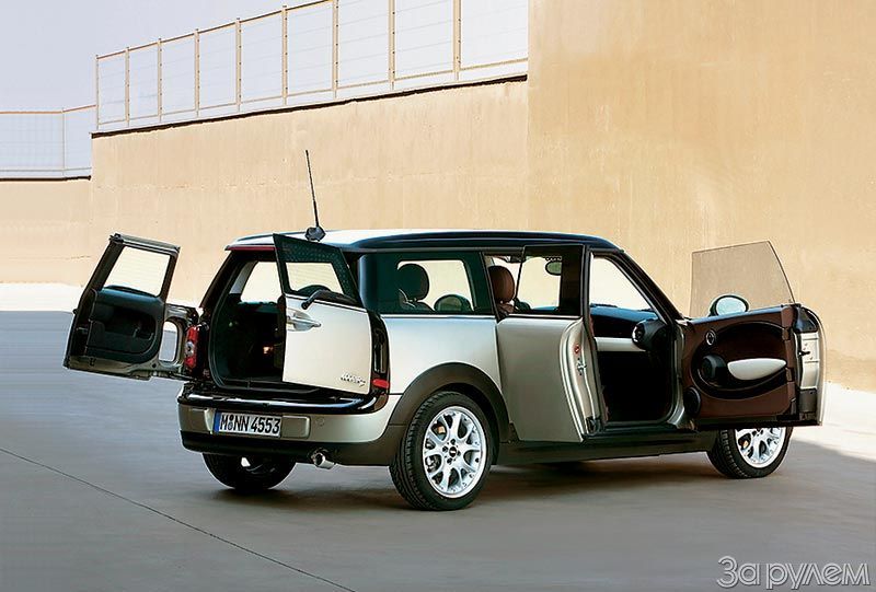 В семействе «Мини» появился… пятидверный универсал «Клабмэн». Необычный, как все «мини». По левому борту дверь одна, по правому – две, но вторая совсем короткая и открывается навстречу движению. Сзади дверь вроде бы одна, но двухстворчатая… «Мини-Клабмэн» на 240 мм длиннее обычной версии, для багажа отведено 260/930 л. А повезет эту поклажу машинка весьма резво, ведь новый 1,6-литровый двигатель развивает 175 л.с. Стрелка спидометра проскакивает первую сотню уже через 7,6 с, а останавливает свой бег лишь на отметке 224 км/ч!