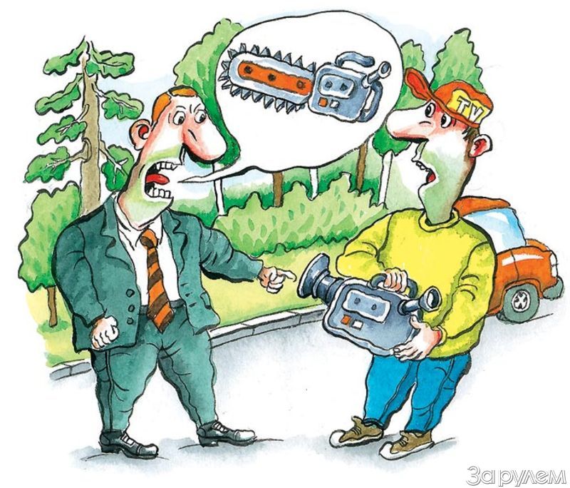 Ведущий стал у автомобиля, прозвучала команда «Мотор!», и… съемка тут же остановилась. Подъехала «девятка» с двумя мужчинами в камуфляже. Они представились лесничими национального парка «Лосиный остров» и поинтересовались, что тут делают телевизионщики. Узнав, что готовится передача, инспекторы лишь предупредили о запрете въезда на территорию парка (указали на знак) и удалились. Работа на съемочной площадке пошла в нормальном режиме. Но тут на дороге остановилась темно-зеленая «Нива», из которой вышел молодой на вид человек в костюме и галстуке и, не поздоровавшись, вдруг начал кричать, чтобы вся бригада немедленно убиралась с территории парка, и вообще – кто дал право без разрешения вести съемку?!