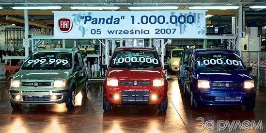 В Польше на заводе ФИАТ собрана миллионная «Панда». Из этого количества на родине остались лишь 82 292 «медвежонка», остальные разъехались по всему миру. На предприятии заняты 4200 человек, которые собирают в день 1400 автомобилей.