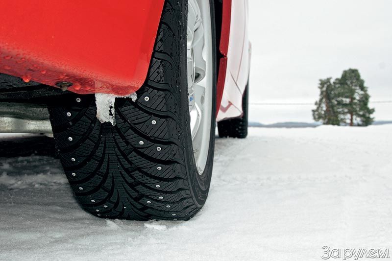 Нет, спокойно ехать на снежной трассе эти шины не дают: так и провоцируют на экстрим! Переднеприводный «Фольксваген-Гольф V», обутый в эти «шиповки», четко реагирует на малейшее движение рулем вблизи нейтрального положения. Остальной поворот – за счет педали газа (система ESP выключена). За такую отточенную реакцию – твердая пятерка: машина идет по трассе собранно, плотно и быстро.