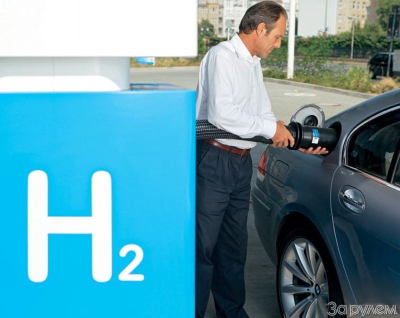Еще один вид топлива – водород. Над адаптацией моторов к этому газу работают несколько фирм. Пожалуй, наибольших успехов на этом поприще добились специалисты БМВ, которые создали «Гидроген-7» – гибридный вариант представительской «семерки». Они приспособили 6-литровый 260-сильный 12-цилиндровый двигатель для работы как на бензине, так и на водороде. В систему впуска встроили дополнительную газовую магистраль, доработали программу управления клапанами и фазами газораспределения «Дабл Ванос» и «Вэлвтроник». Чтобы добиться на одной заправке 700-километрового запаса хода, 74-литровый бензобак дополнили резервуаром с двойными стенками, вмещающим 8 кг жидкого водорода (теплоизоляция баллона позволяет хранить его при температуре –250° С). По заверениям баварцев, они готовы к серийному производству, но останавливает отсутствие развитой сети водородных заправок. В перспективе проект многообещающий, ведь из выхлопной трубы идет почти чистый водяной пар.