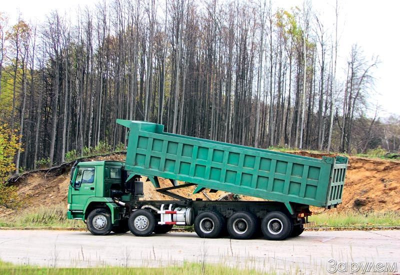 На HOWO установлена рядная «шестерка» китайского производства «Штайр-WD615.69» объемом 9,7 л с турбонаддувом и интеркулером. Она удовлетворяет экологическим нормам Евро II, а при некоторой доработке и Евро III. В принципе, ее показатели – 336 л.с. и 1350 Н.м очень неплохие, но, учитывая огромную потенциальную грузоподъемность самосвала, их можно считать лишь минимально достаточными. К сожалению, сполна оценить его тяговые и динамические возможности мотора не удалось: барахлил привод рейки ТНВД.