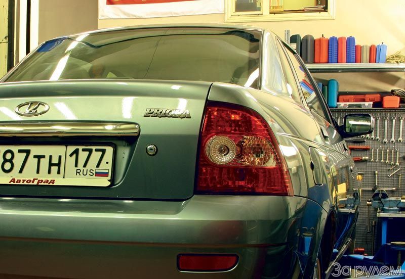 Затем отводим фонарь назад по оси авто, но очень аккуратно, чтобы не стряхнуть со шпилек и не потерять резиновые шайбы - без них в боковой нише багажника со временем нальется водоем. Дабы забыть о проблеме раз и навсегда, нелишне приклеить шайбы к корпусу. Почему на ВАЗе этого не предусмотрели? Впрочем, нет худа без добра: подбором толщины шайб поверхности прилегания фонаря легко вывести «в ноль», что мы попутно проделали с правым, который был утоплен относительно крышки багажника.