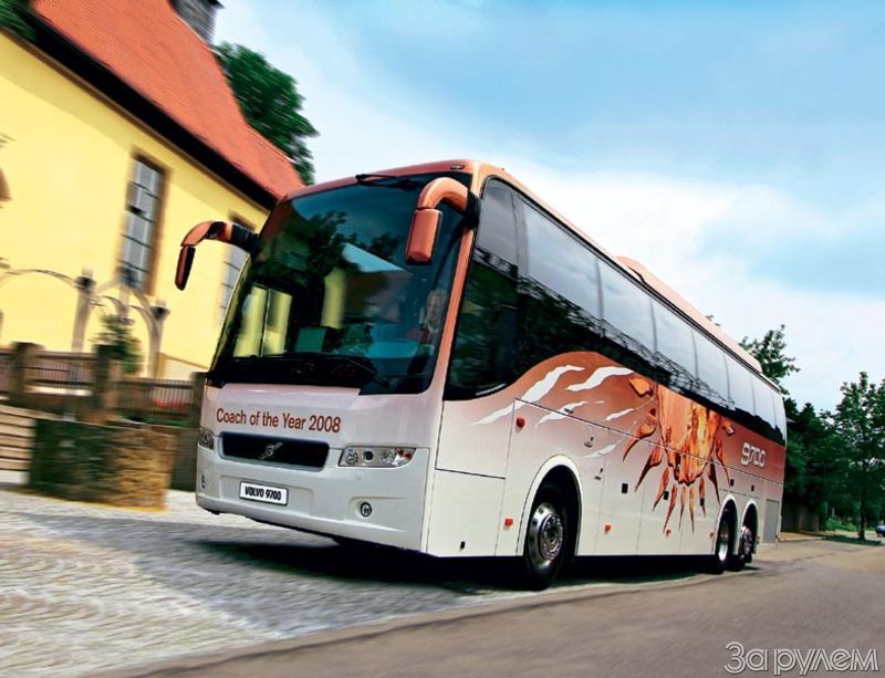 Лучший автобус года (Coach of the Year 2008) - комфортабельный туристический «Вольво-9700» представлен сразу в двух версиях. Двухосная (размеры 12 300х2550х3600 мм) имеет 49 кресел, трехосная крупнее - 13 800х2550х3750 мм и вмещает 57 + 1 пассажира. Шестицилиндровый двигатель «Вольво-DH1 2E» развивает 340,380,420 или 460 л.с., коробка передач «I-Шифт» (I-Shift) второго поколения.