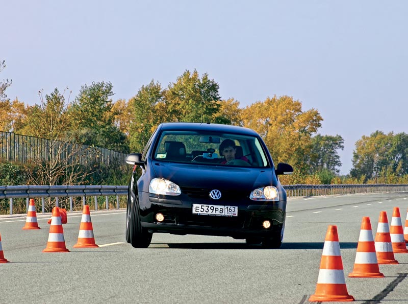 Неоднократный победитель наших тестов уступил первое место. Видимо, модернизация увеличила сопротивление качению, повысился расход топлива независимо от скорости. Может быть, это плата за лучшие тормоза. На асфальте не очень комфортны - потряхивают машину на швах, шумно катятся, но прямую держат четко. На сухой переставке, как обычно, великолепны. И скорость самая высокая, и поведение машины отличное: можно не только уверенно и четко выполнить экстремальный маневр, но и получить от этого удовольствие. Мокрая дорога заставляет совсем немного (на 0,5 км/ч) снизить скорость, но поведение «Гольфа» остается четким и чутким. Тормоза на сухой дороге очень хороши, а по мере прогрева шин становятся еще лучше. Отрыв от ближайшего конкурента около двух метров - полкорпуса машины. На мокром асфальте тоже самые лучшие, правда, здесь ближайший соперник проигрывает всего метр. Грунтовка допустима в ограниченных дозах.