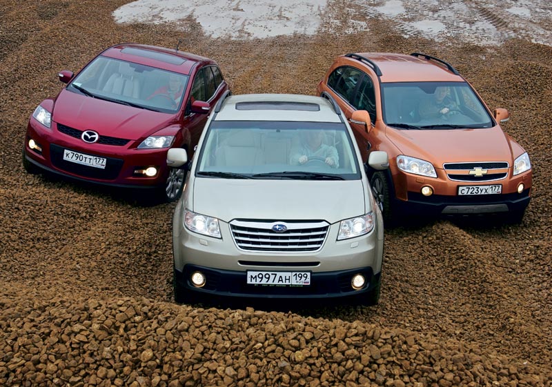 В автомобильном мире тоже полно секретов. Ходовые возможности моделей «подчеркивает» внешность и приукрашивает реклама. Хитрые маркетологи заставляют посмотреть на машину с нужного ракурса – и вы на крючке: уже оформляете кредит. Скажем, «Шевроле-Каптива»: одетые в пластик пороги и псевдостальные накладки бамперов – внушительно! Добавьте 3,2-литровый мотор, и кажется, вам покорится любое направление. Поставим рядом «Мазду СХ-7». Ее воздушный силуэт – антипод «Шевроле». От такой машины ждешь не подвигов на бездорожье, а прыти на шоссе, ведь под капотом бензиновый турбо. Ну а «Трибека»? Сразу не поймешь: эдакая загадочная звезда в созвездии «Субару».