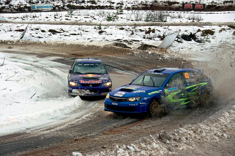 Редкий случай – очная борьба на трассе скоростного участка. А нам, россиянам, особенно приятно, что эффектный обгон исполнил москвич Евгений Вертунов (№ 43). А вот и сам Евгений. К сожалению, из-за досадной ошибки в середине второго дня гонки он не смог финишировать. Это зимнее ралли давно уже стало легендарным - в нынешнем году стартовало пятьдесят седьмое! За долгую историю гонки ее победителями 39 раз становились шведы, 16 – финны, и лишь по одному разу норвежец и француз. То есть единственный раз нескандинав опередил всех на ледовом и снежном покрытии. К сожалению, в последние годы затяжные оттепели ставят соревнования под угрозу срыва. Судьба шведского ралли решается в самый последний момент по фактической погоде. Не стал исключением и год нынешний. Но, к чести организаторов, этап состоялся. Пусть экипажам, помимо снега и льда, пришлось мчать на шипованных покрышках по воде, гравию и даже асфальту, это все равно было легендарное шведское ралли. И как нередко здесь случается, имя победителя стало сюрпризом для всех.