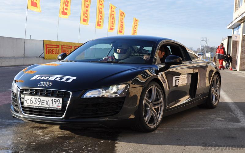 На пресс-конференции приглашенные гонщики, а это пилот WRC Яри-Матти Латвала и победитель суточного марафона 24 часа Ле-Мана в классе GT Фабио Бабини, немногословны и спокойны. Видимо, мыслями они уже на трассе, где выступят водителями "гоночных такси" для журналистов. На пит-лейн их уже ждут Ford Focus ST и Audi R8. "Заряженный" Focus "обут" в Sottozero модификации W210/W240, а Audi R8 досталась более экстремальная W270.