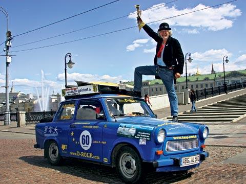 Рольф Беккер, он же D-Rolf – от немецких слов Deutschland (Германия) и Drehorgel (шарманка), – известен дюжиной мировых рекордов. Среди них 48-часовая непрерывная игра на шарманке, а большинство остальных связаны с культовым автомобилем социалистической Германии. Его «трабанты» совершали самые длинные прыжки, самые долгие поездки на двух колесах. Их вместе с хозяином видели в Америке, которую он пересек от Голливуда до Нью-Йорка (и в которой «Трабант» в конце концов… угнали), а также в Бразилии, Иране, Австралии. Рольф – единственный водитель «Трабанта», посетивший на нем все континенты.