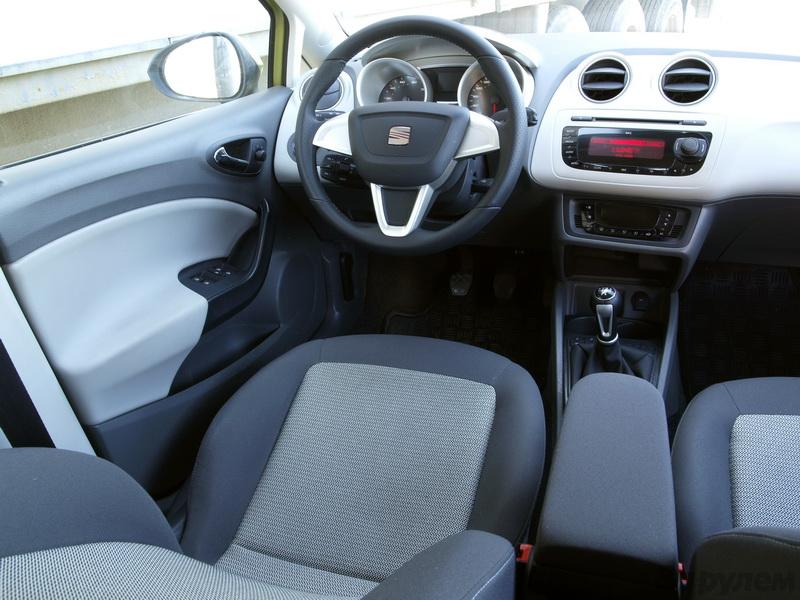 По-фольксвагеновски выверены усилия на рычажках и кнопках. Серебристые колодцы отбрасывают блики на стекла приборов, что, впрочем, не сильно мешает восприятию их показаний. Не хватает указателя температуры охлаждающей жидкости. Причем эта странная тенденция затронула многих одноклассников. Во время прогрева остается лишь ориентироваться на обороты холостого хода или мгновенный расход топлива, который снижается до 0,8 л/час в «рабочем» диапазоне температуры. Благо прогрев по-фольксвагеновски быстрый. Наконец, удобной стала рукоятка механической коробки передач, в отличие от экспериментальных форм рычага модели Leon. Унификация конструкций SEAT и Volkswagen замаскирована оригинальными приборными блоками «Ибицы». Не возникает ощущения дежа вю, которое присуще, например, автомобилям Skoda. В целом, эргономика достойная. Неплохой комфорт обеспечен и пассажирам заднего ряда. Кто бы сомневался, ведь «Фольксвагены» известные рекордсмены по части салонного и багажного простора. Последний вмещает 292 л поклажи при том, что напольный коврик скрывает полноразмерную запаску.