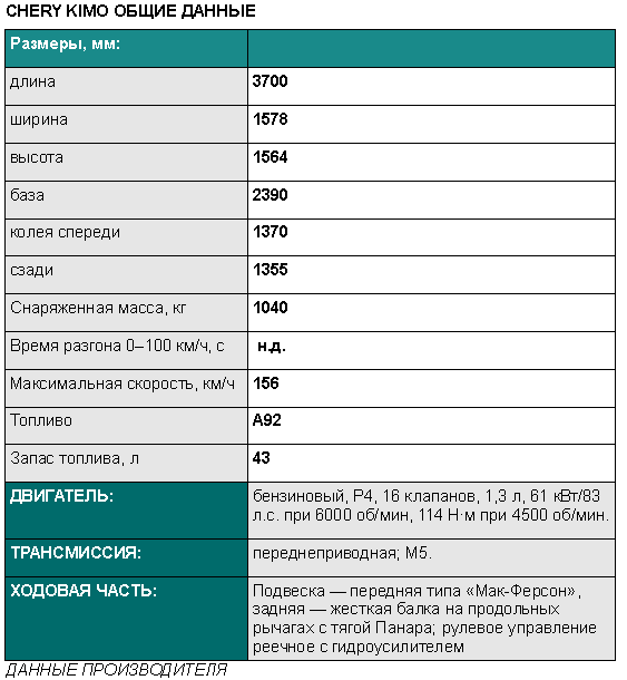 «Чери-Кимо» принадлежит к новому поколению китайских автомобилей, которые могут рассчитывать на похудевшие ныне кошельки покупателей.