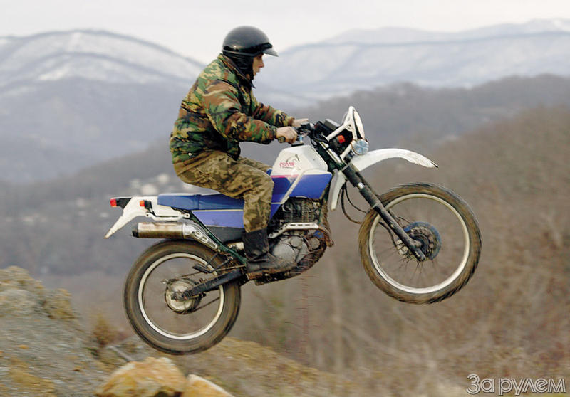 HONDA TLR250. Поначалу я побаивался подходить к этому раритету: он всего на год моложе меня. Но, понаблюдав за тем, как его хозяин Влад (Пако) штурмовал утесы (на них, если верить преданию, вороны склевали печень Прометея), мой скепсис рухнул со скал в ущелье. Этот выпущенный когда-то весьма ограниченной серией мотоцикл я назвал бы, если позволите такую формулировку, почти триальным. Однако к нему прилагается ПТС, так что поезжай на нем и по дороге. На глади асфальта ему, конечно, делать абсолютно нечего, но если сложится, что иначе нельзя, то и асфальт «переварит».
