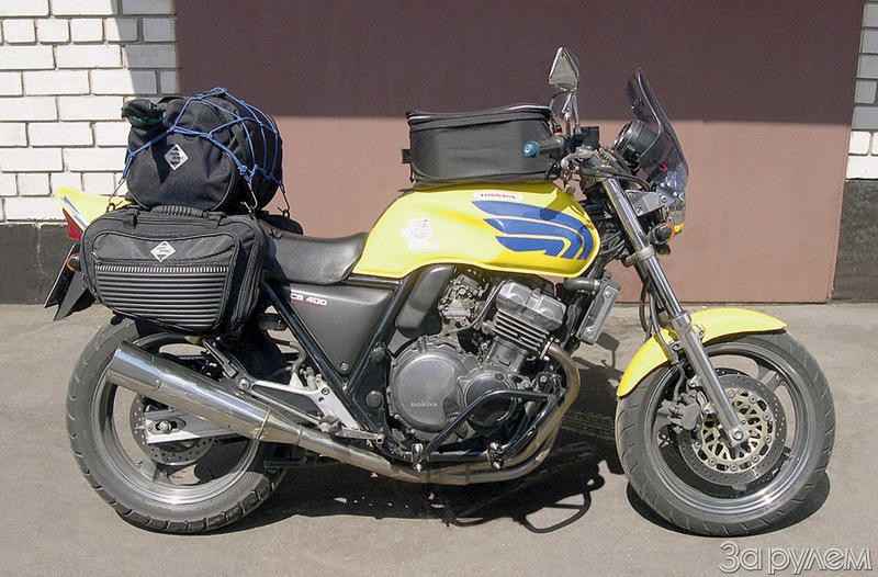 ...Честно говоря, ожидал увидеть груду ржавого японского железа, а увидел вполне «живой», на «троечку с плюсом» желтый Honda CB400 Super Four, 1992 года выпуска. Ну, потерты боковая крышка двигателя и зеркало, погнут радиатор, бросились в глаза следы кустарной покраски. Но подвески не текли, двигатель заводился с пол-оборота и «держал» холостые, посторонних звуков не слышноѕ И это несмотря на приличный пробег. «Надо брать!» И я выгреб из кармана наличность.