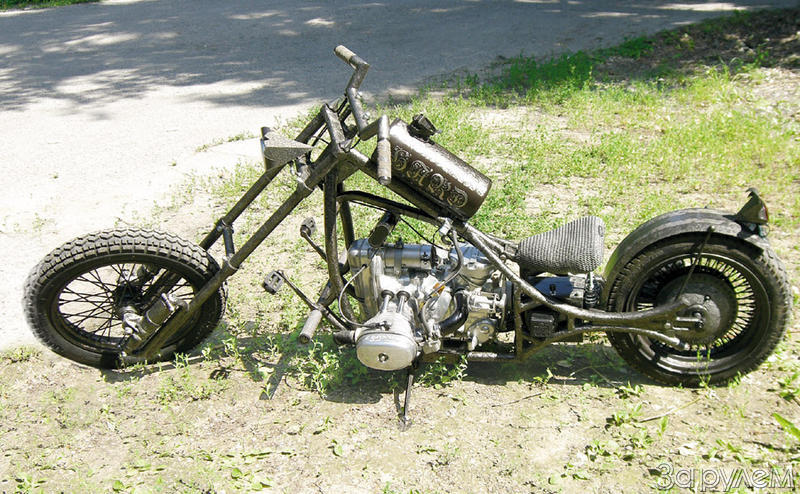 По его «венам» давно не тек бензин, «нервы» уж и позабыли, что такое ток, а шины – воздухѕ Закрались подозрения, что бездыханным он оставался едва ли не с 1974 года, когда его сделали в Ирбите. В голове крутилась фраза из фильма: «Резать к чёртовой матери!» Но чем? У меня не было даже гаечных ключейѕ Мы с мотоциклом скитались по квартирам, гаражам и заводам, экономили на еде и одежде – каждую свободную копейку тратили на инструменты и запчасти... Замысел относительно его внешности постоянно менялся, как облако на сильном ветру. Когда обзавелся «болгаркой», то резал, резал, резал!.. Материализацию мысли ускорил приобретенный сварочный полуавтомат. Я настолько проникся уважением к тем чудесам, которые с ним вытворял, что даже не пользовался защитной маской – хотел наблюдать таинство преображения.