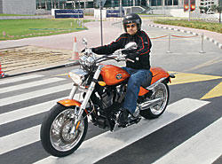 Первая же короткая ознакомительная поездка перед двухдневным пробегом вдрызг разбила привычные стереотипы. Разгоняется эта V-альтернатива (сами уже знаете чему), как подготовленный для дрэг-рейсинга болид. Пробные торможения чуть не привели к падению: тормоза схватывают намертво (два диска О 300 мм со скобами Brembo)! Переезд через нескольких "лежачих полицейских" продемонстрировал идеальную работу подвесок - "перевертыша" спереди и газонаполненного моноамортизатора с "прогрессией" сзади. Впечатляет породистый рык V-twin (кривая момента иллюстрирует незаурядные динамические возможности двигателя, еще больше впечатлитесь, если вспомните о 6-ступенчатой КП). Все, аллес, дожили - гоночный чоппер! И куда катится мир?..