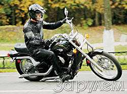 Пазл моторный. Двигатель не по-чопперному современен: тут и жидкостное охлаждение, и трехклапанные головки цилиндров с верхними распредвалами. Для полного счастья не хватает разве что системы впрыска. Зато с выпуском все в лад: предыдущий владелец вместо штатных глушителей установил даже не прямотоки, а просто трубы! То есть ничего глушащего нет ва-ще! Звук, стоит крутануть ручку газа, заставляет грудную клетку вибрировать. Это не треск и не ор, а именно благородный голос чоппера. Когда едешь по городу, громкий выхлоп - хорошо: тебя слышат и замечают. Но через пару часов столичной толкотни мозг начинает бастовать и требовать передышки. Зато эти два часа!.. Мотор не по-чопперному оборотистый и допускает довольно резкие ускорения и замедления. Для города другого и не надо! Да и на загородном шоссе 805 "живых" "кубиков" легко разгоняют мотоцикл до 150 км/чѕ И тогда начинается борьба с воздухом, в которой мотоцикл с ездоком способны одолеть рубеж 180 км/ч. Да, надо учесть, что после "140" потери "противовоздушных войск" становятся непомерно велики.