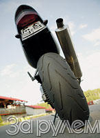 После замены упиленных Dunlop D-208 ощущения мне показали, что с ног моей черной лошадки скинули свинцовые подковы - мотоцикл стало не узнать. Разгонялся, тормозил и входил в повороты как бы не от физического воздействия, а всего лишь от энергии мыслительного импульса. Крутанул газ порезче - и уже в "свечке", хотя ожидал, что непрогретый задний баллон "провернется". А как легко байк шел накатом!.. Вот уж не думал, что разросшееся от износа пятно контакта старой резины способно так ощутимо влиять на динамику мотоцикла.