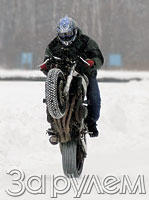 Знаете, для чего придумали кантри-кросс? Объяснить просто. Короткая гонка по несложной трассе, простые регламент и судейство предоставляют возможность участвовать в соревнованиях не самым большим мастерам, вплоть до новичков. Принцип безопасности - превыше всего! Зимой подобные соревнования тоже возможны. Их уже давненько организуют наши северные соседи - финны: с 1971 года регулярно проводят гонки по замерзшим озерам на эндуриках и мотоциклах с колясками. Как результат, появилась фактически новая дисциплина - айс-рейсинг (ice-racing), сочетающая в себе элементы разных видов мотоспорта, в том числе модного супермото. Трасса по конфигурации напоминает шоссейное "кольцо", с правыми и левыми поворотами. Длина - не меньше двух километров. Минимальная ширина - 15 метров (это позволяет собирать много участников в каждом заезде). Трамплины, открытый грунт, корни деревьев - исключены. В зоны вылета нагребают мягкий снег. Перед гонкой тренировки на трассе не проводят, потому до старта лед не покорежен. Важное условие: шипы, которые используют в айс-рейсинге, такие же, как на шинах для зимнего кросса - не более 7 мм по высоте.