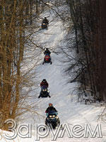 Именно так напрашивается назвать "мастодонта" Yeti V-1300. В цифровой части этого "шифра" модели не что иное, как кубатура двигателя. Могучий 4-тактный мотор обладает колоссальной тягой на любых оборотах, а в определенный момент приводит Yeti в состояние стабильной резвости. Это не спортивная машина, и чумового драйва от нее вроде не ждешь, но динамикой и скоростными характеристиками она заткнет за пояс многих "спортсменов". Однако попробую оценить ее утилитарные свойства. Тут и настройка вариатора, отлично уживающаяся с паровозной тяговитостью двигателя, и понижающая передача, и могучий фаркопѕ Видать, канадцы неспроста "натолкали" в снегоход столько тяги - "заточили" его под буксировку. Огромные лыжи и гигантская опорная поверхность трака обуславливают незначительное давление машины на снег. В чем я убедился, когда заехал на глубокую целину с толстенным настом. "Трактор" не сделал и намека на то, что может провалиться в рыхляк, и своей дикой тягой моментально переключил меня из состояния настороженности в абсолютную уверенность. Только и успевал поражаться энергоемким подвескам, мощному подогреву всего, что только может согревать пилота, информативности приборки